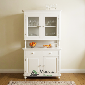 Vetrina Cristalliera Soggiorno Elegante, 2 Porte Bianco Opaco in Legno di Pioppo – Mobile Soggiorno Arte Povera Made in Italy – Mis. 126x44x207h (1423)