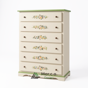 Cassettiera 6 cassetti decorata in stile Shabby Chic