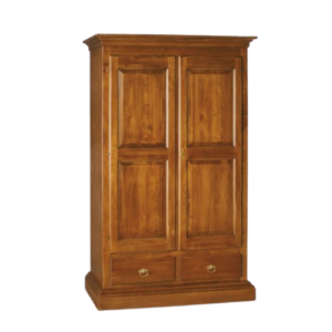 Armadio Camera da Letto Arte Povera, Noce Scuro o Decorato Arancione, Armadio 2 Ante Capello Dritto con 2 Cassetti + Bastone Appendiabiti, Guardaroba Classico 61x125x200H (246+252F)