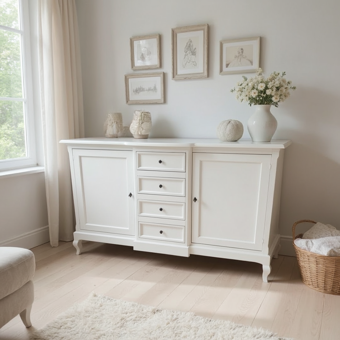 Comodissimae Credenza in arte povera bianca, un capolavoro di eleganza e funzionalità.