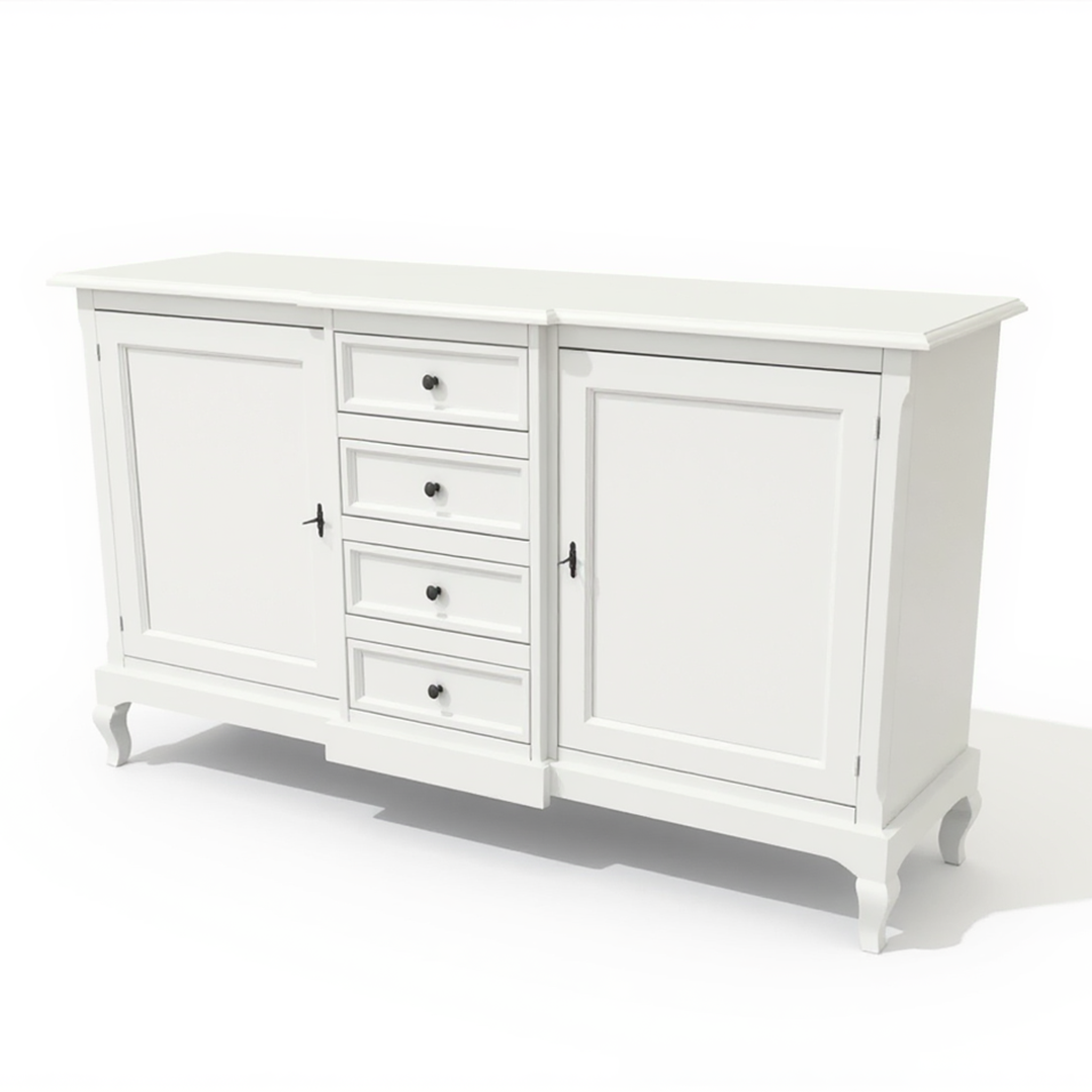 Dotata di due ampi sportelli laterali e quattro generosi cassetti centrali, offre un’incredibile capacità di stoccaggio per organizzare con ordine e stile ogni spazio della tua casa.