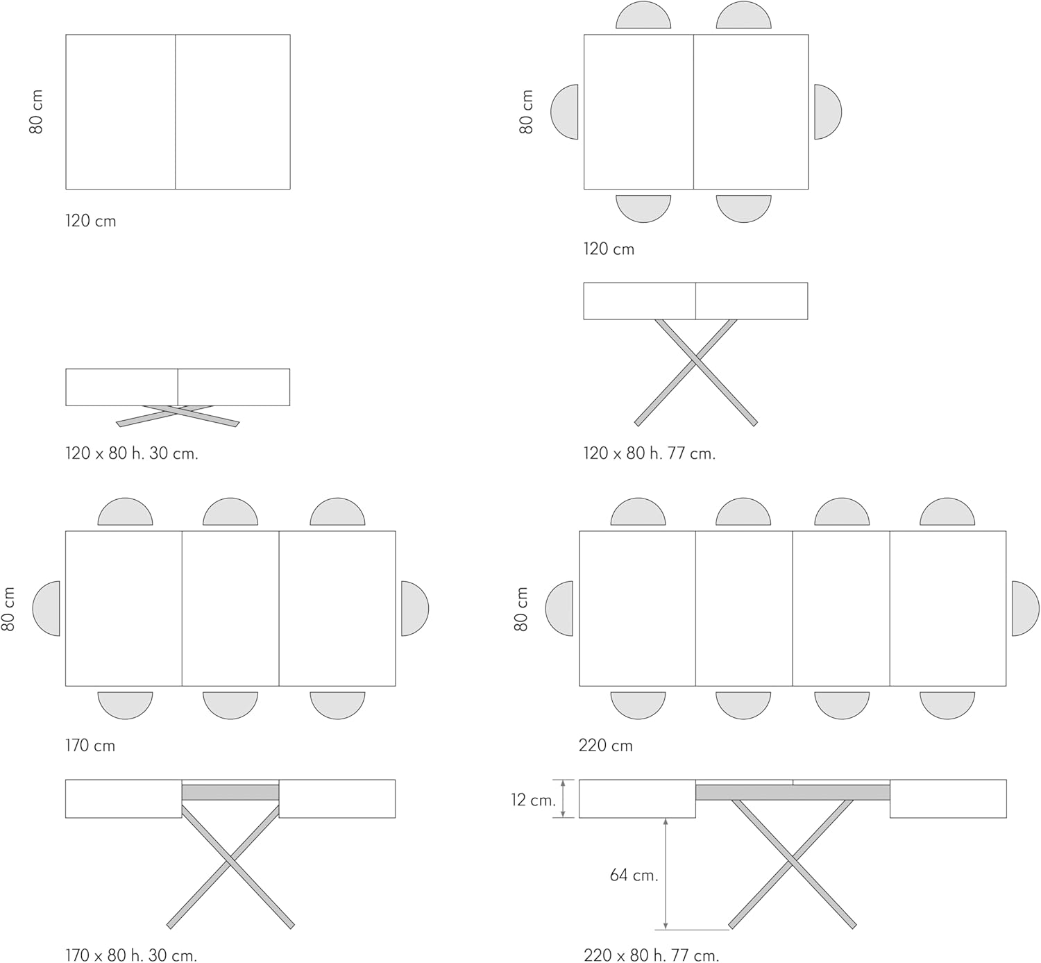 • Dimensioni aperto: fino a 220 x 80 x H 77 cm (tavolo da pranzo)