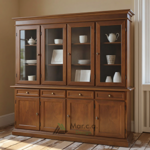 Mar.c.a. Design – Vetrina Classica 2 Ante in Vetro, Legno di Pioppo, Cristalliera Libreria Mobile Arte Povera, Noce Scuro o Avorio Patinato Mis.87x40x189h (475-575F)