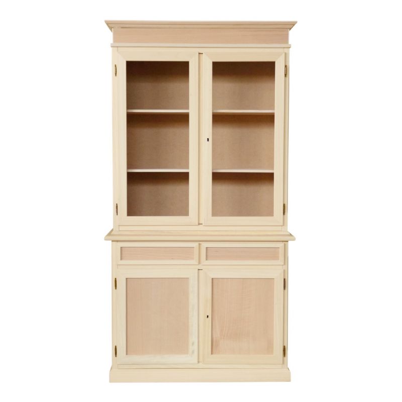 Ha due sportelli con vetri per mostrare il contenuto, ma anche due comodi cassetti dove mettere le posate o altro. Hai a disposizione anche due sportelli in legno dove poter custodire ciò che non vuoi far vedere.
